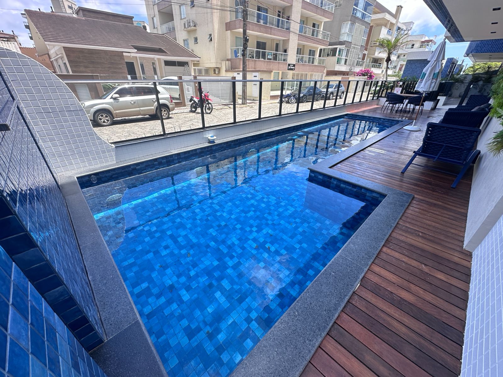 Descrição: Apartamento com piscina no predio, no 1º piso, edifÃcio com elevador, a 180 metros da praia de Canto Grande |